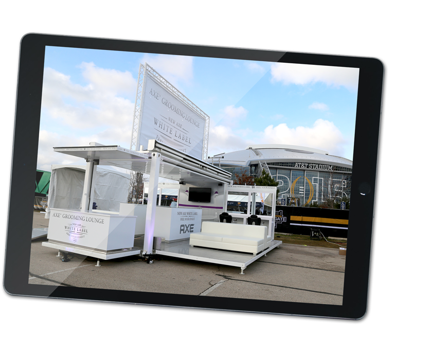 AXE White Label is a line of grooming products, created to reach a maturing audience of AXE body spray users. To reach the target demographic we created a mobile experience by using a custom shipping container from Steel Space Concepts. Arriving at the College Football Playoffs, a branded shipping container was expanded to reveal a full-service salon, styling hair and shining shoes.