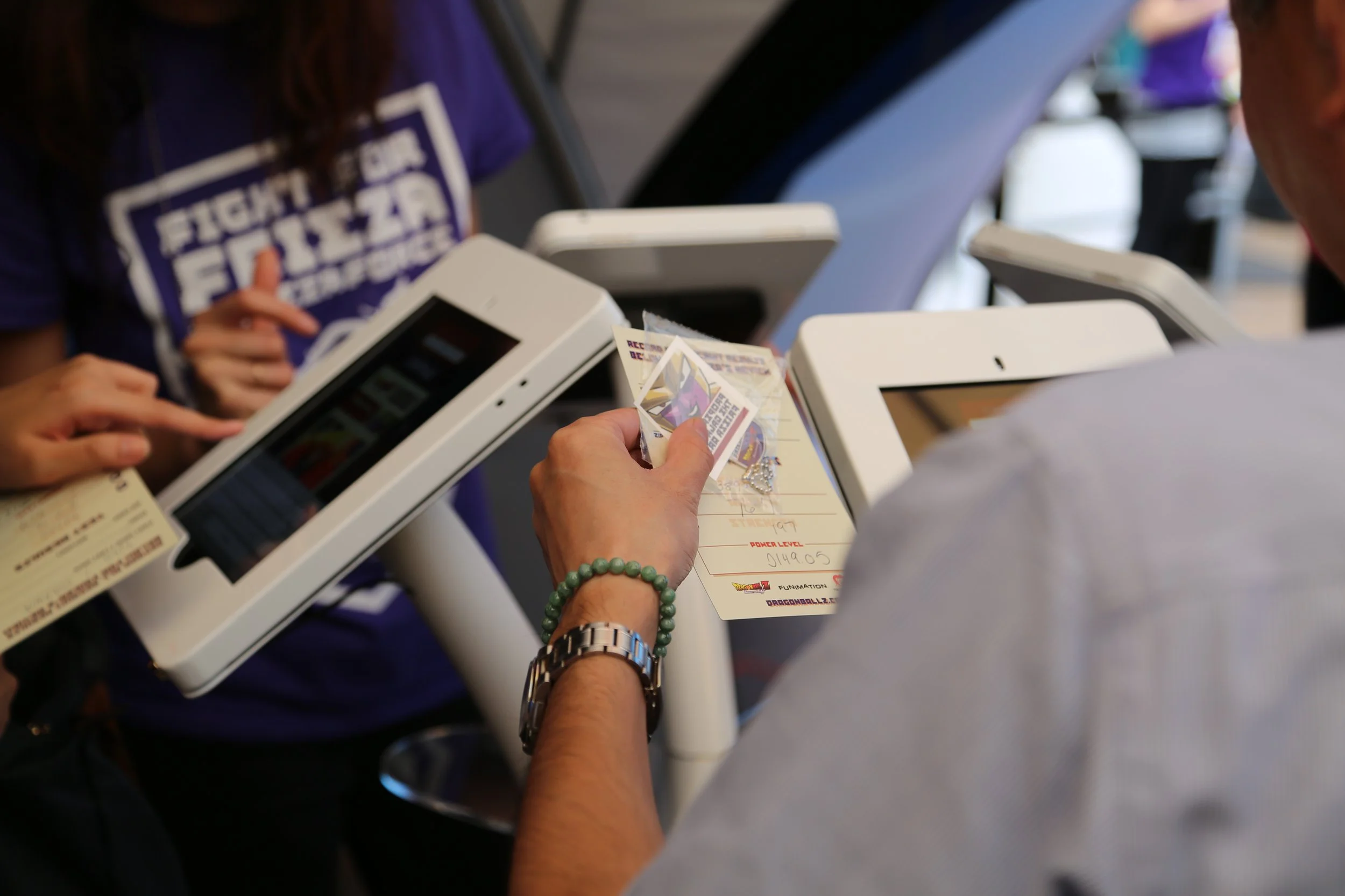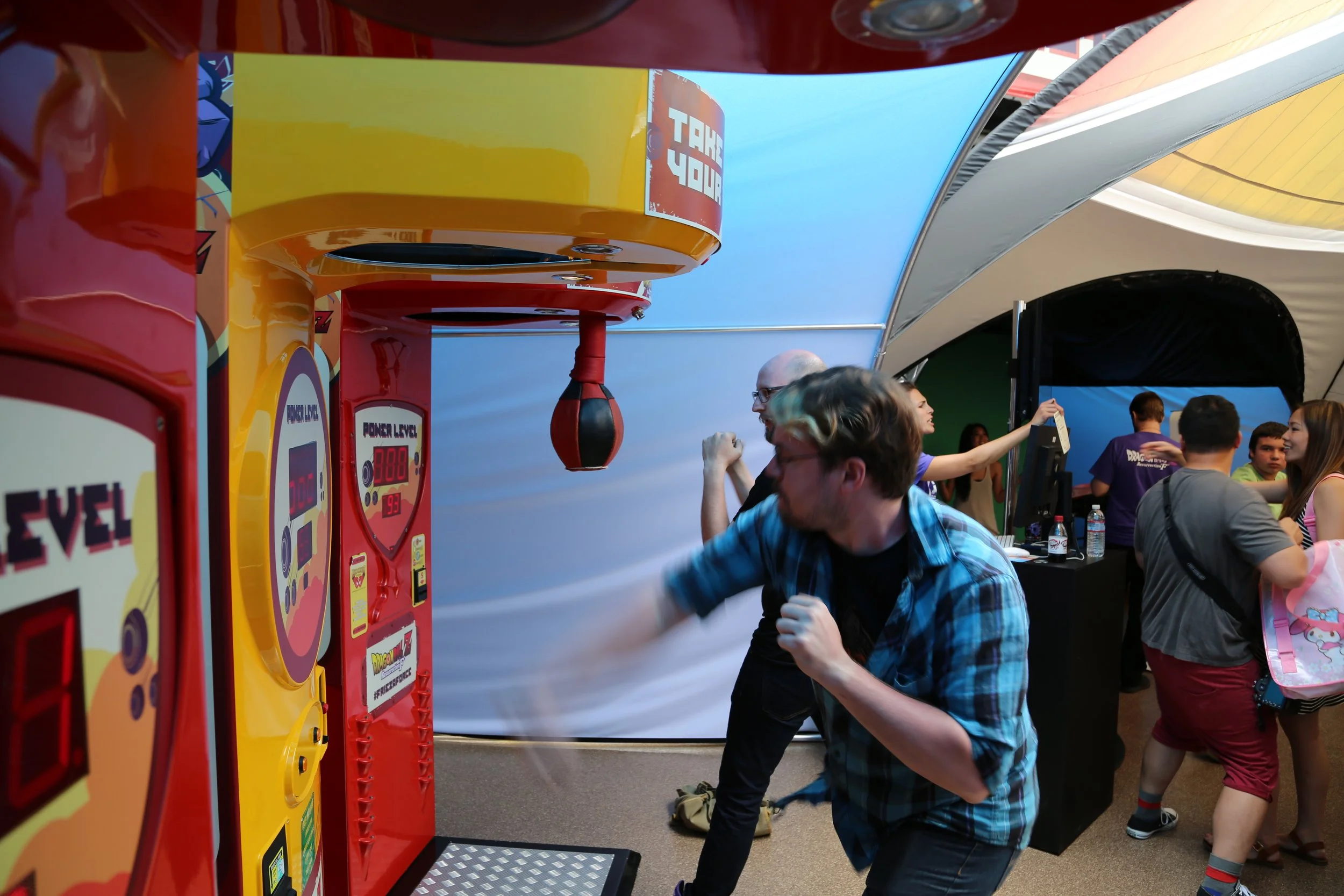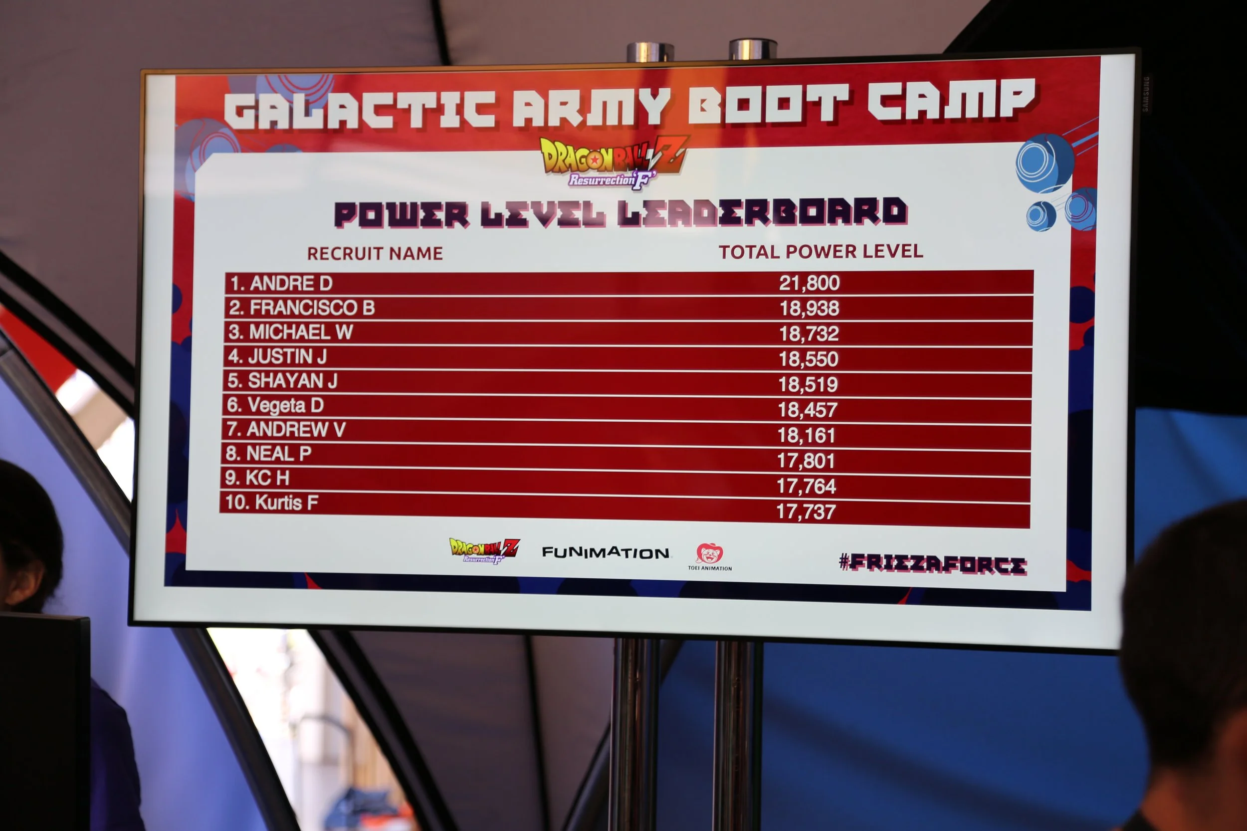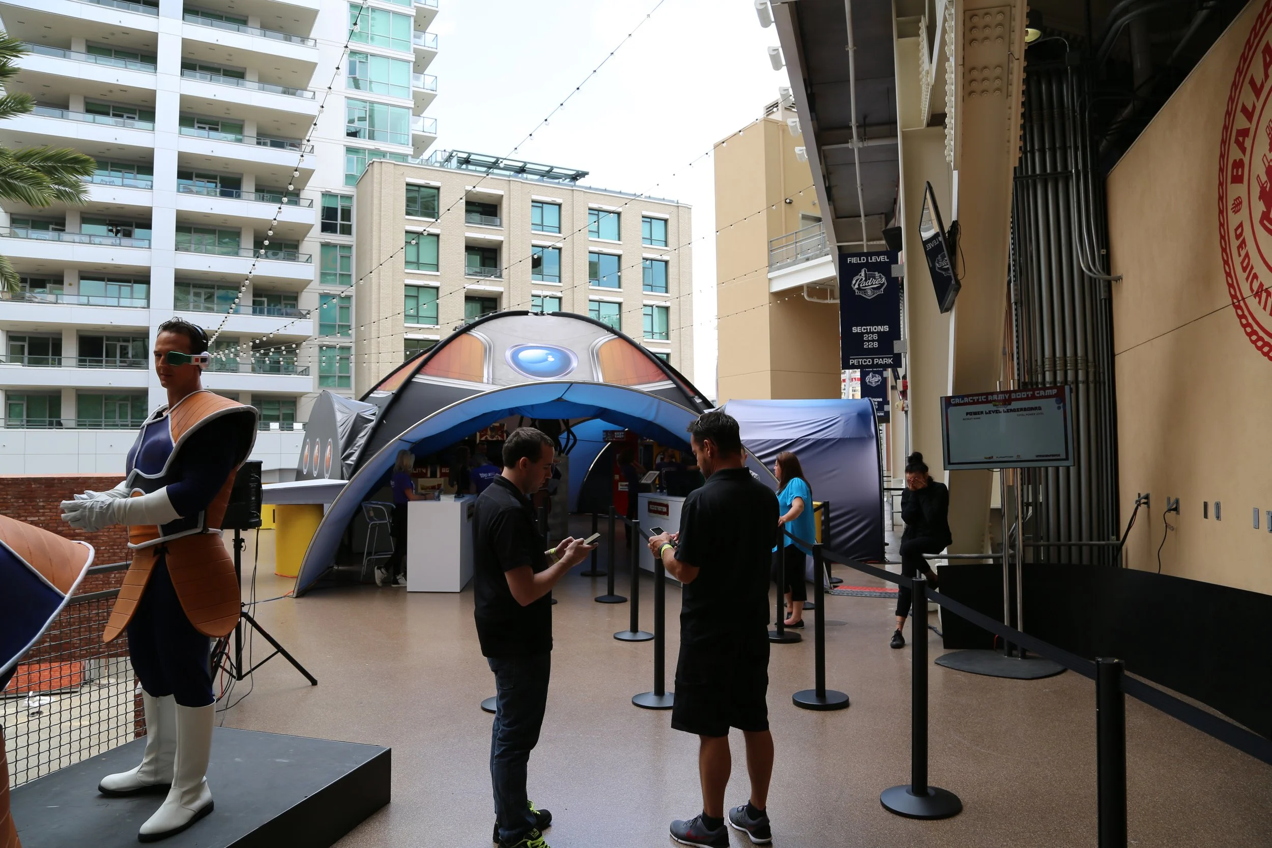 At Petco park in San Diego, to promote the Funimation feature film “DRAGONBALL Z Resurrection F” we created a popup installation with a variety of games to judge your capabilities to join the FRIEZA FORCE. Attendees register at a kiosk and they can compete against other attendees to determine strength, agility and intelligence. Each station was branded and the scores were registered and uploaded to a leaderboard.