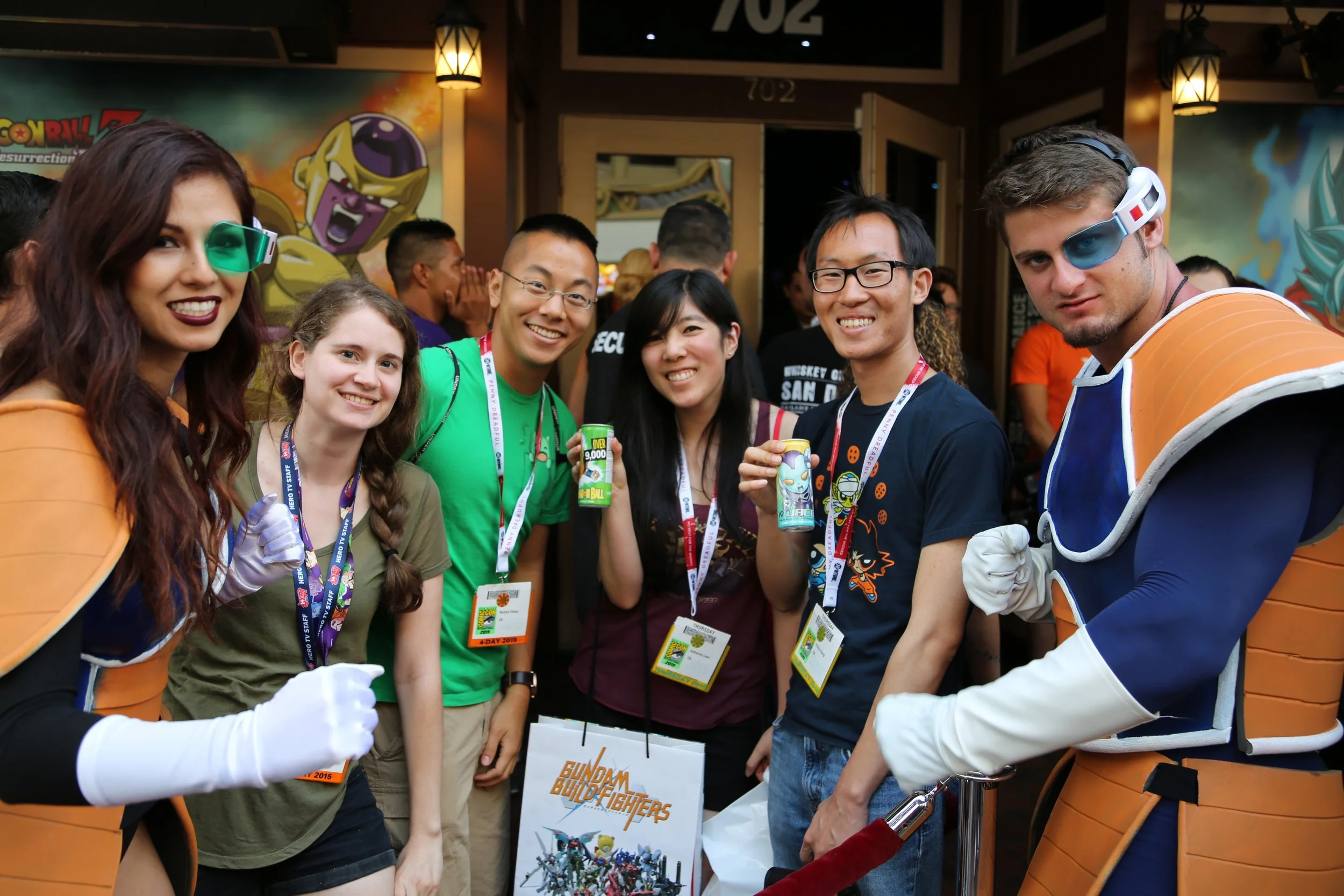 Street teams were dressed in Dragonball Z costumes and roamed the area around the convention center and and posed for pictures, handed out premiums and recruited partygoers. The venue for the viewing party was a local bar, decorated with Dragonball Z themed accessories. The voice actors were in attendence and there were themed stations like an arm wrestling booth and temporary tattoo kiosk. (Oh, and there was a giant Dragonball themed ice luge)